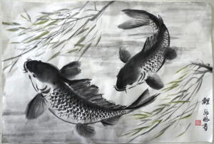 荘子、漁父 「精誠所至 金石為開」 ※未表装 サイズ:35×60cm YouTube動画は→こちらです |