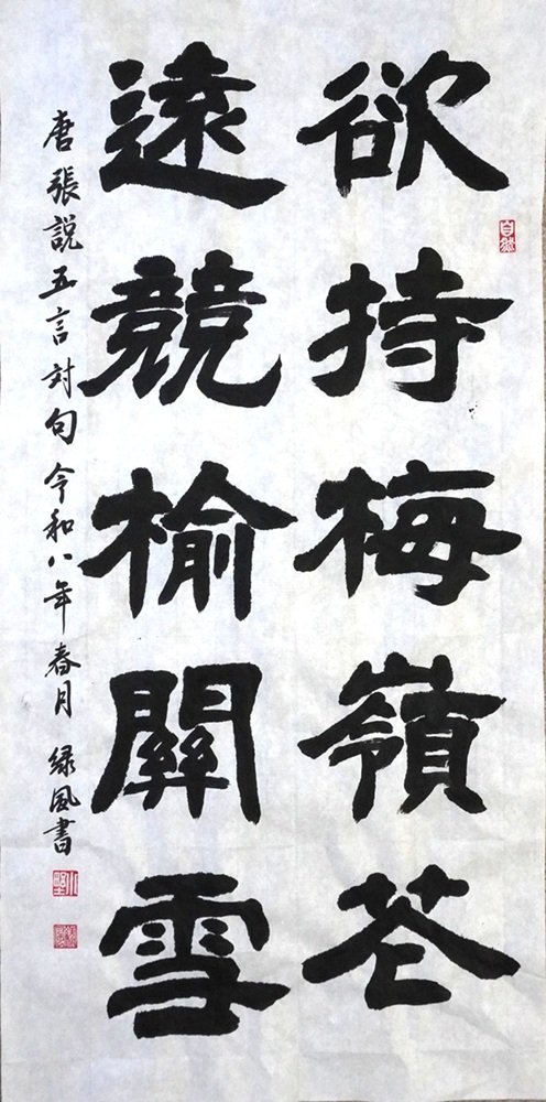 唐詩 「欲持梅嶺花 遠競楡関雪」 ※未表装 サイズ:35×70cm 半切1/2サイズ YouTube動画は→こちらです |