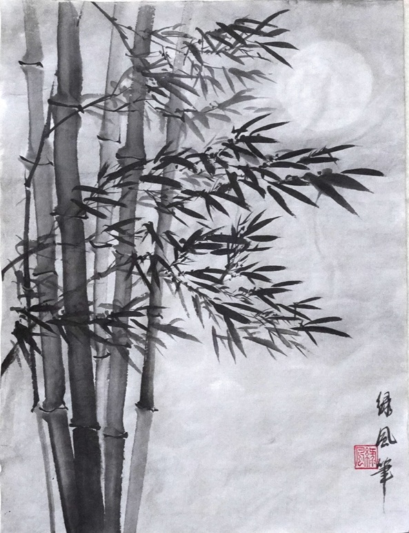 月と竹・墨竹画 (未表装) サイズ:17.5×23cm |