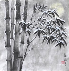 墨竹画・雪の降る竹林 (未表装) サイズ:23cm×23cm |