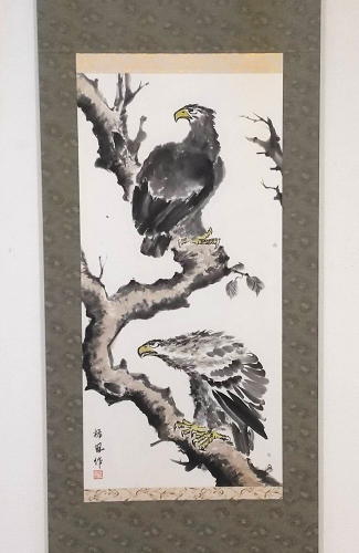 ■鷲の墨彩画/水墨画 ■ 35cm×70cm |