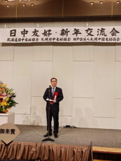 「日中友好懇親パーティー、日中友好・新年交流会、北海道日中友好協会NPO法人札幌中国・・・」 札幌市内のホテルで、東北、北海道の中国総領事のスピーチ |